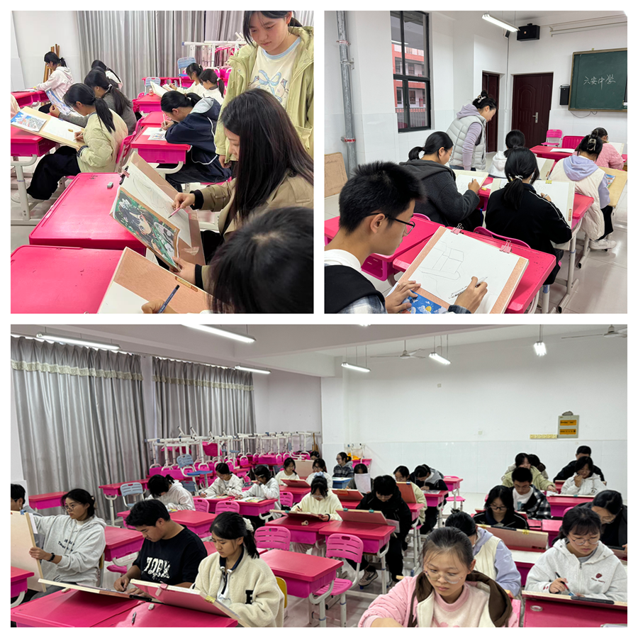 活动内容:同学们依兴趣自由创作,题材鲜活多样。有人描摹动漫人物的灵动,有人勾勒自然风景的静谧,也有人沉浸于石膏像与静物素描的细腻,用画笔诉说审美与热爱。老师全程巡回指导,每一句鼓励与专业建议,都为创作注入更多灵感。